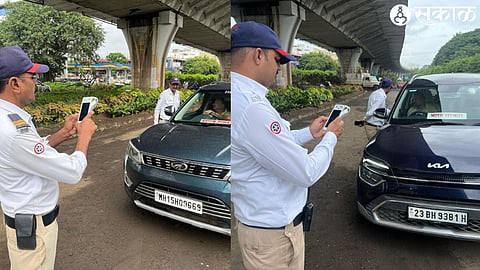 SAKAL Impact : खासगी वाहनांना भारत सरकार, महाराष्ट्र शासन, पोलीस अशा सरकारी पाट्या लावून मिरवणाऱ्या वाहन चालकांवर शहर पोलिसांनी दंडात्मक कारवाईचा बडगा उगारला आहे. सोमवारी (ता. २९) सकाळच्या सत्रात २८ वाहनचालकांविरोधात पोलिसांनी थेट दंडात्मक कारवाई करण्यात आली. (SAKAL Impact drivers installing government plates action by city police)