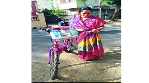 सायकलवर जाऊन करता वृत्तपत्र विक्री