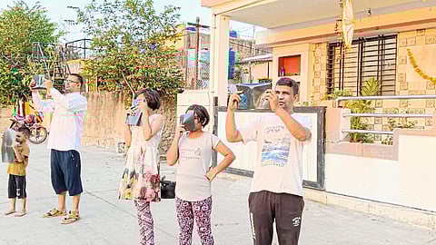 मनमाड (जि. नाशिक) : दिवाळीच्या लक्ष्मीपूजनानंतर मंगळवारी (ता. २५) खंडग्रास सूर्यग्रहणाचा खगोलीय अविष्कार खगोलप्रेमींनी ‘याची देही याची डोळा’ अनुभवला. मनमाड शहरातील बालगोपाळ, ज्येष्ठ नागरिकांनी सन गॉगल व ‘एक्स-रे’च्या साहाय्याने सूर्यग्रहण बघितले. (solar eclipse experienced by Manmadkar Use of sun goggles Xray paper Nashik Latest Marathi News)