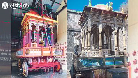 यंदा हा उत्सव १ एप्रिलला साजरा होणार असून त्यानिमित्त श्रीराम व गरुड रथाची डागडुजी सुरू आहे. (Sriram Garuda Ratha repair work started Preparations by team raste akhada talim Nashik News)
