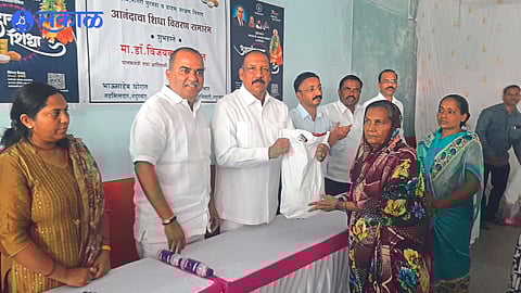 नंदुरबार व चौपाळे येथे गुढीपाडव्यानिमित्त बुधवारी (ता. २२) ‘आनंदाचा शिधा’ वाटप कार्यक्रम झाला. त्या वेळी पालकमंत्री डॉ. गावित बोलत होते. या वेळी खासदार डॉ. हीना गावित, जिल्हा परिषदेच्या कृषी सभापती हेमलता शितोळे, माजी जिल्हा परिषद सदस्य सागर तांबोळी, तहसीलदार भाऊसाहेब थोरात, सरपंच नामदेव भिल (चौपाळे) आदी उपस्थित होते.