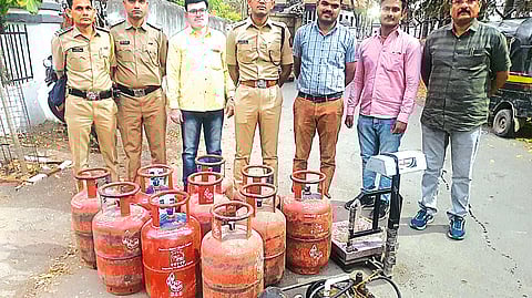 पोलिसांनी त्यांच्याकडून एकूण ९३ हजार ८०० रुपये किमतीचे दहा गॅस सिलिंडर, विद्युत मोटार, इलेक्ट्रिक वजनकाटा, ऑटोरिक्षा व रोख ८०० रुपये असा मुद्देमाल जप्त करण्यात आला.