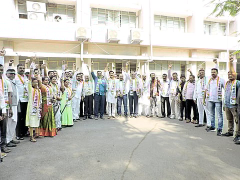 धुळे : राष्ट्रवादी काँग्रेसचे प्रदेशाध्यक्ष जयंत पाटील यांच्या विधानसभेतील निलंबनाविरोधात जिल्हा राष्ट्रवादी काँग्रेसने शुक्रवारी (ता. २३) जिल्हा प्रशासनाला निवेदन दिले. तसेच, निदर्शने करून निलंबन त्वरित मागे घ्यावे, अशी मागणी केली. आंदोलकांनी शिंदे- फडणवीस सरकारचा निषेध केला.