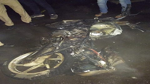 हेल्मेटमुळे वाचले दोघांचा जीव : धडकेत दुचाकी जळून खाक