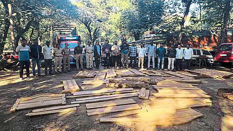वन विभागाच्या अधिकाऱ्यांना २० डिसेंबरला मिळालेल्या माहितीवरून सहाय्यक वनसंरक्षक नंदुरबार (प्रा. व वन्यजीव) धनंजय पवार, चिंचपाडा वनक्षेत्रपाल मंगेश चौधरी, नवापूर वनक्षेत्रपाल स्नेहल अवसरमल, रेंज स्टाफ चिंचपाडा व नवापूर स्टाफ यांच्यासह वावडी (ता. नवापूर ) येथे जाऊन दावा देवलसिंग वसावे यांच्या घराची सर्च वॉरंटने झडती घेतली. (Teak wood was caught from Vavdi Shiwar by forest department Nandurbar News)