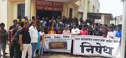 सोमवारी (ता. 24)सकाळी पालिकेच्या मुख्याधिकाऱ्यांना निवेदन देण्यासाठी स्थानिक गडकरी चौकातून मोर्चा पालिकेवर धडकला. आंदोलनकर्त्यांनी सत्ताधारी व प्रशासनाविरोधात नारेबाजी, प्रदर्शनाने विरोध दर्शविला. एवढेच नव्हे तर संतापलेल्या खेळाडूंनी पालिकेच्या पुढील मुख्य रहदारीच्या गांधी चौकात चक्क खेळाची "बॉण्ड्री' करून खेळाला सुरुवात केल्यामुळे जवळपास अर्धा ते पाऊण तास वाहतूक व्यवस्था बंद होती. यामुळे मुख्य अधिकाऱ्यांनी आंदोलनकर्त्यांना भेट देऊन त्यांचे निवेदन स्वीकारले. क्रीडासंकुलाला जागा न देण्याचा सत्ताधाऱ्यांनी घेतलेला निर्णय यावर विस्तृत चर्चा करून तोडगा काढण्यात येईल, असे आश्वासन दिल्यामुळे आंदोलनकर्त्यांनी रस्ता मोकळा केला. मात्र, उपविभागीय अधिकाऱ्यांनाही निवेदन दिले, पालिकेने न्याय दिला नाही तर आंदोलन आक्रमक करण्यात येईल असा इशारा या निवेदनात दिला.