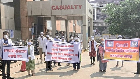 नागपूर : भाजप-सेनाप्रणित युती सरकारच्या काळात १९९५ सालापासून राज्यात कंत्राटी नियुक्तीचे धोरण वैद्यकीय शिक्षण व संशोधन विभागामार्फत राबवले जात आहे. राज्यातील १८ शासकीय वैद्यकीय महाविद्यालय व रुग्णालयात साडेचारशेपेक्षा जास्त वैद्यकीय शिक्षक कंत्राटी अर्थात तात्पुरत्या सेवेवर आहेत. कोरोनाच्या काळात याच अस्थायींनी रुग्णांवर उपचार केले. प्रसंगी स्वतः कोरोनाबाधित झाले. २०१४ पासून भाजपने वैद्यकीय शिक्षकांच्या तोंडाला पाने पुसली. या सरकारने यांची सेवा नियमित करण्याचे आश्वासन दिले. मात्र, अद्याप सेवा कायम केली नाही. यामुळे अस्थायी वैद्यकीय शिक्षकांनी सामूहिक रजा आंदोलन सुरू केले. त्यामुळे ऐन कोरोना काळात वैद्यकीय सेवा कोलमडण्याची भीती आहे.