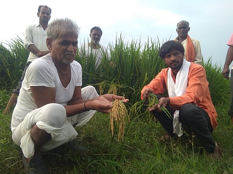 टेकाडी/कन्हान (जि.नागपूर): पारशिवनी तालुक्याचे मुख्य पीक धान आहे. पावसाळ्याच्या सुरुवातीला शेतकऱ्यांनी विविध केंद्रातून धान बियाणे विकत घेतले. पऱ्हे टाकून लागवड केली. एकरी २० ते २५ हजार रुपये खर्च केला. यात अनेक जण कर्जबाजारी झाले. मात्र धानपीक चांगले येईल, कर्ज फिटेल, अशी शेतकऱ्यांना आशा होती. परंतू वेळेच्या आत धान निसवण्याला सुरवात झाल्याने फसवणूक झाल्याचे शेतकऱ्यांच्या लक्षात आले.