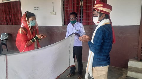 वधूवराने मास्क, सॅनिटायझरचा केला वापर