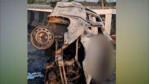 पोलिसांना माहिती मिळताच पोलिस आणि टोलप्लाझा येथील काही कर्मचारी घटनास्थळी आले. त्यांनी आग विझवण्याचे प्रयत्न केले. परंतु आग इतकी भीषण होती की, कारचा जळून कोळसा झाला आहे. गाडीला लागलेली आग इतकी भीषण होती की, गाडीतील प्रवाशांना बाहेर पडण्यासही वेळ मिळाला नाही. या अपघातात दोघांचा जागीच होरपळून मृत्यू झाला आहे. पोलिस अधिक तपास करत आहेत.