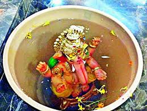 गणेशभक्तांनी कोरोना संक्रमणाच्या पार्श्वभूमीवर मूर्तिकारांच्या योजनेला प्रतिसाद देत गणेश विसर्जनासाठी घराबाहेर न जाता घरीच टबमध्ये विसर्जन करण्यावर भर दिला आहे. रविवारपासून शहरात अनेक ठिकाणी घरगुती विसर्जनाला सुरुवात झाली आहे. भक्तांनी घरीच टब, मोठे घमेले, बादली यांचा विसर्जन कुंड म्हणून उपयोग करून विसर्जन केले. त्यातील माती कुंडीत भरून फुलझाड लावण्याची योजना अमलात येणार आहे. यामुळे गणेशाचे वास्तव्य घरातच राहणार असून फुलझाडांच्या रूपाने श्रीगणेश स्मरणात राहणार आहे, अशी भावना आहे.