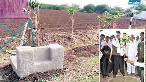 मुख्यमंत्र्यांच्याहस्ते वृक्षाराेपण केलेल्या उपक्रमाचा नामफलकही याठिकाणाहून गायब झालेला आहे. शिवाय थातूरमातूर सिमेंटचा आेटा बांधून ‘इव्हेंट’ केल्याचा प्रकार याबाबतीत घडला आहे. त्यामुळे जिल्हयात झालेल्या वृक्षाराेपणाची चौकशी करण्याची गरज निर्माण झाली आहे.