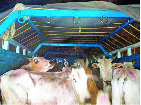 पाटणबोरी (जि. यवतमाळ) : मध्यप्रदेशातून तेलंगणात होणाऱ्या जनावरांच्या तस्करीचा पर्दाफाश करण्यात आला. पोलिसांनी कंटेनरचा पाठलाग करून 40 गोवंशासह एकूण 21 लाख दहा हजार 400 रुपयांचा मुद्देमाल जप्त केला. यावेळी तीन संशयितांना अटक करण्यात आली.