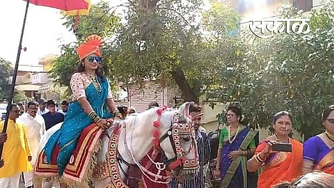 दरम्यान मूळचा वाढोना येथील मुलासोबत नुपूरचा विवाह ठरला आणि हा विवाह थाटामाटात रविवारी 7 फेब्रुवारी सकाळी 11 शहरात पार पडला. दरम्यान, विवाहाच्या पूर्वसंध्येला नवरदेव राशी निघतो आणि घोड्यावर बसतो, असेच चित्र आतापर्यंत आपल्या भागात आपण आतापर्यंत पाहत आलेले आहोत. मात्र चंद्रकांत उभाड यांनी मुला मुलीत भेद पाळायचा नाही, असे ठरवून नुपुरला हळदीच्या दिवशी चक्क घोड्यावर बसवून मिरवणूक काढली. सुरूवातीला घोड्यावर बसण्यासाठी नुपूर काहीशी घाबरली मात्र तिच्या भवानी तिला धीर दिला.