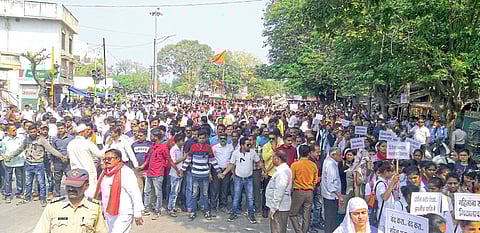 वर्धा : हिंगणघाट येथे प्राध्यापक युवतीच्या अंगावर पेट्रोल टाकून पेटवून देण्याच्या भयावह घटनेचे जिल्ह्यात पडसाद उमटतच आहेत. गुरुवारी (ता. सहा) विविध सामाजिक संघटना आणि राजकीय पक्षांच्या वतीने हजारो विद्यार्थी व नागरिकांच्या सहभागात मोर्चे काढण्यात आले. वर्धा, देवळी, केळझर, दहेगाव (गोसावी) येथे मोर्चाद्वारे नागरिकांनी आपला उद्वेग व्यक्त केला. यादरम्यान बाजारपेठाही बंद होत्या. मुली-महिलांच्या सुरक्षिततेसाठी शासनाने कठोर पावले उचलावी, आरोपीला फाशीची शिक्षा देण्यात यावी, अशी मागणी मोर्चेकऱ्यांनी केली. हिंगणघाट येथील नंदोरी चौकात सोमवारी (ता. तीन) एका प्राध्यापक युवतीला आरोपी विकेश नगराळे (रा. दारोडा, ता. हिंगणघाट) याने पेट्रोल टाकून पेटवून दिले. यात पीडित युवती 40 टक्के जळाली असून, तिच्यावर नागपूर येथील खासगी रुग्णालयात उपचार सुरू आहेत. या घटनेने दारोडा गावात तणावपूर्ण शांतता आहे. दारोडा गावात दररोज मोर्चे काढण्यात येत आहेत. कोणतीही अनुचित घटना घडू नये म्हणून पीडिता व आरोपीच्या दारोडा येथील घरासमोर चोख पोलिस बंदोबस्त कायम आहे.