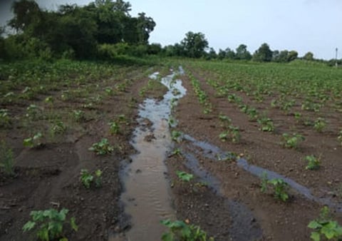 हिंगणी (जि. वर्धा) : वारंवार तक्रारी करूनही पाटबंधारे विभागाने कालव्याच्या वितरिकेची दुरुस्ती केली नाही. शेवटी मुसळधार पावसात धामणगाव शिवारातील वितरिका फुटल्याने पावसाचे पाणी शेतात शिरले. पाण्यामुळे शेतातील कपाशीचे पीक आणि सुपीक माती खरडून गेल्याने शेतकऱ्याचे मोठे नुकसान झाले आहे.