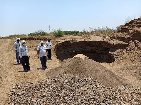 बाळापूर (जि. अकोला) : कोरोना व्हायरस संसर्ग थांबवण्यासाठी लॉकडाउन जाहीर करण्यात आले असून, संचारबंदी चालू आहे. सध्या प्रशासनाचे सर्व लक्ष कोरोना संसर्ग थांबवण्याकडे असल्याचा फायदा घेत अवैध वाळू उपसा करणाऱ्या वाळू माफियांनी पुन्हा मन नदीचे पात्र पोखरण्यास सुरुवात केली आहे. बाळापूर तालुक्यातील डोंगरगांव येथील सर्तक ग्रामस्थांनी अशाच प्रकारे होणारी वाळूचोरी महसूल प्रशासनाच्या निदर्शनास आणून दिली आहे. यावेळी अवैध वाळू साठा जप्त व पंचनामा करून डोंगरगाव येथील सरपंच ब्रह्मदेव इंगळे यांच्या ताब्यात दिला आहे.