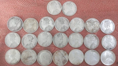 गोरेगाव (जि. गोंदिया) - तालुक्यातील बोटे या गावी प्रभाबाई शहारे वय ७० वर्षे, यांचे जिर्ण जुने मातीचे घर फोडण्याचे काम चालू असतांना भिंतीतुन टिनाची जिर्ण पेटी दिसली. ती पेटी बाहेर काढताच सन १८९० ते १९५० वर्ष लिहलेले व प्रिस नावाचे १ रुपयांचे २९४ पांढ-या रंगातील धातुचे सिक्के( ता ०३ आक्टोबर) आढळून आले. हे सिक्के खासगी घराच्या भिंतीत आढळुन आल्याने पोलीसात तक्रार दाखल करण्यात आली नव्हती. परंतु, लाला शहारे यांनी शनिवारी (ता. १६) पोलीसात सिक्के मिळाल्याची तक्रार दाखल करताच तत्काळ पोलिसांनी २९४ सिक्के जप्त केले आहेत.