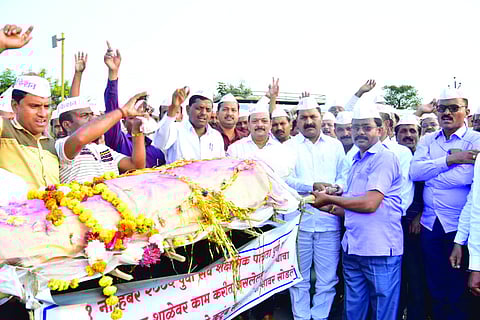 टाकळघाट (जि.नागपूर) ः जुनी पेन्शन योजना लागू करण्यासाठी शिक्षक आमदारांसह शेकडो शिक्षक शनिवारी रस्त्यावर उतरले. नवीन अंशदान पेन्शन योजना लागू केल्याने त्यांनी सरकारची प्रतीकात्मक अंत्ययात्रा काढून निषेध नोंदविला. त्यासाठी सेवाग्राम ते नागपूर अशी पायदळ दिंडी सेवाग्राम येथून सुरू झाली. शनिवारी सायंकाळी बुटीबोरी येथे पोहोचून डोंगरगावच्या विजय कॉलेजमध्ये मुक्काम करण्यात आला.