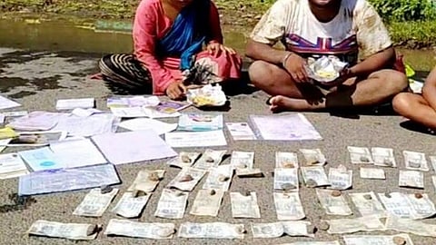 भंडारा: गेल्या काही दिवसांपासून भंडारा जिल्ह्यात वैनगंगेच्या पुराने अक्षरशः थैमान घातले आहे. विशेष म्हणजे पाऊस नसतानाही पूर आल्यामुळे नागरिक हैराण झाले आहेत. अचानक धरणांतून पाण्याचा विसर्ग केल्यामुळे नदीकाठच्या गावांना याचा प्रचंड फटका बसला आहे. काही कुटुंबांवर यामुळे आता जगावे कसे? अशी स्थिती निर्माण झाली आहे. भंडाऱ्यातील एका कुटुंबावर अक्षरशः पुराच्या पाण्यात ओले झालेले पैसे रस्त्यावर वाळवण्याची वेळ आली आहे.