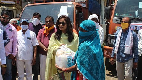 स्थानिक जनशिक्षण संस्थान येथील खासदार जनसंपर्क कार्यालयात शनिवारी (ता.25) खासदार भावना गवळी यांनी धान्य व किराणा किटचे वाटप करण्यात येणाऱ्या वाहनांची पाहणी करून वाहनांना रवाना केले. त्यानंतर जिल्ह्यातील मानोरा, कारंजा, मंगरुळपीर, मालेगाव, रिसोड आदी लॉकडाऊन प्रभावित भागातील गोरगरीब, गरजू, निराधार, कामगार कुटुंबांना शिवसैनिकांच्या हस्ते घरोघरी जाऊन व सामाजिक अंतराचे भान ठेवून मदतीचे वाटप करण्यात आले. मिळालेल्या या मदतीमुळे गोरगरिबांच्या चेहऱ्यावर आनंद दिसून येत होता.