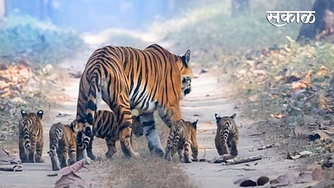 वेलतूर (जि. नागपूर) : माजी आंतरराष्ट्रीय क्रिकेटपटू सचिन तेंडूलकर, राहूल द्रविडसह इतरही जगप्रसिद्ध सेलिब्रेटींनी उमरेड-कऱ्हांडला- पवनी अभयारण्याला भेट दिली. मात्र, पर्यटकांचे आकर्षणाचे केंद्र ठरलेल्या जय वाघाच्या मृत्यूनंतर पर्यटकांची संख्या रोडवली होती. आता या अभयारण्यातील गोठणगाव प्रवेशद्वाराजवळच आज पाच नवे पाहुणे दिसल्याने पर्यटकांना सुखद धक्का बसला. फेरीची (टि.-६) हे पाच बछडे आहेत.