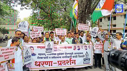 NCP activists, led by Anil Deshmukh, stage dharna at district collector office in Maharashtra demanding full loan waiver for farmers.