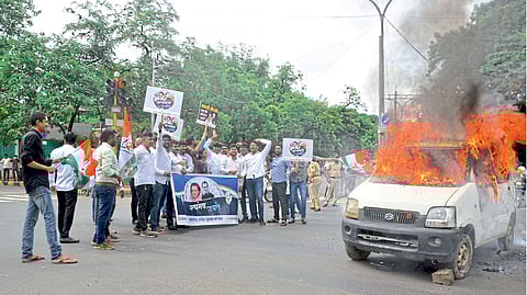 विरोधी पक्षाचे अस्तित्व दाखवण्यासाठी गाडी पेटवली आहे. युवक काँग्रेसच्या प्रभारी प्रदीप सिंधव, महासचिव श्रीनिवास नालमवार, राष्ट्रीय सचिव अजित सिंग, तनवीर विद्रोही, आसिफ शेख, प्रणीत जांभुळे, पंकज सावरकर, दुर्गेश पांडे, आकाश गुजर, सईस वारजूरकर, नीलेश खोबरागडे, वसीम खान, रौनक चौधरी, शिलज पांडे, संतोष खडसे, अनुराग भोयर, फजलूर कुरैशी, वैभव सरनायक, जयसेन सरदार, फिरोज शाह, रिझवान बेग आदींचा समावेश होता. पोलिसांनी सर्वांना ताब्यात घेऊन नंतर सोडून दिले.