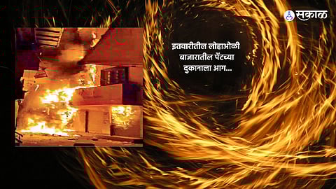 नागपूर : इतवारीतील लोहाओळी बाजारातील एका पेंटच्या दुकानाला मंगळवारी आग लागली. दिवाळीनिमित्त दुकानात विक्रीसाठी आणलेला संपूर्ण पेंट, ज्वलनशील टारपीनमुळे आगीने भडका घेतला. उंच आगीच्या ज्वाळांनी परिसर हादरला. अरुंद रस्त्यांमुळे आगीवर नियंत्रण मिळविण्यात अग्निशमन जवानांना चांगलीच कसरत करावी लागली. दुपारपर्यंत सतत पाण्याचा मारा करीत आगीवर नियंत्रण मिळवले. परंतु दुकानातून धूर निघत असल्याने सायंकाळपर्यंत एक अग्निशमन बंब घटनास्थळी कायम होता.