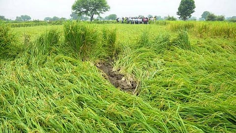 मेंढला (जि. नागपूर) : हवामान खात्याचा अंदाज खरा ठरला असून नरखेड तालुक्यात काही ठिकाणी अवकाळी पावसाने जोरदार हजेरी लावली असून पिकांचे मोठे नुकसान झाले आहे. काल पासून ढगाळलेले वातावरण होते. बुधवारी सायंकाळी आभाळ आल्यापासून गुरुवारी सकाळी ७ वाजता पावसाला सुरवात झाली.
