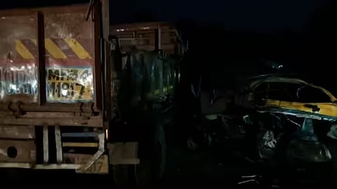 ट्रक अष्टभुजा मंदिराजवळील रेल्वे उड्डाणपुलावरुन भरधाव वेगात येत होता. अचानक ट्रक चालकाचे नियंत्रण सुटलं आणि ट्रक शेजारुन जाणाऱ्या एका ऑटोरिक्षावर उलटला. ट्रकखाली चिरडल्याने ऑटोमधील चार प्रवाशांचा जागीच मृत्यू झाला, यामध्ये रिक्षाचालकाचाही समावेश आहे.