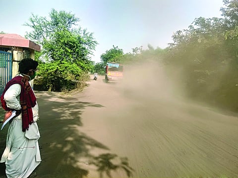 चांपा (जि.नागपूर): उमरेड तालुक्यांतील नागपूर-उमरेड महामार्गालगतच्या एका कंपनीच्या कामामुळे नागपूर-उमरेड महामार्ग ते भारवाड समाजातील गोपालनगर या एक किलोमीटर रस्त्यावर धुळीचे प्रमाण मोठ्या प्रमाणात वाढले आहे. या रस्त्यावर जडवाहनांची रहदारी अधिक आहे. त्यामुळे नागरिकांसह शेतकऱ्यांना धुळीच्या समस्येला सामोरे जावे लागते. वाहनांच्या उडणाऱ्या धुळीमुळे या मार्गावर अपघाताची शक्यता वाढली आहे.