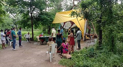 महिला आर्थिक विकास महामंडळाच्या इमारतीमध्ये तालुक्यातील कोविड केअर सेंटरची निर्मिती केली आहे. तालुक्यात बाहेरून आलेले व कोरोनाबाधितांच्या संपर्कात आलेल्या व्यक्तींना या केंद्रात विलगीकरणात ठेवले जाते. तसेच जिल्ह्याच्या बाहेर जाण्यासाठी वैद्यकीय प्रमाणपत्र येथून दिले जाते. त्यामुळे तालुक्यातील नागरिकांची येथे ये-जा सुरू असते. येथे रुग्णांना सेवा देणारे डॉक्टर व परिचारिकांना थांबण्यासाठी आधी एक स्वतंत्र खोली दिली होती. मात्र, नंतर ती खोली खाली करण्यात आली. पाच दिवसांपूर्वीच संदर्भिय रुग्णांची तपासणी व प्रमाणपत्र देण्यासाठी तात्पुरती व्यवस्था म्हणून तंबू तयार करण्यात आला.