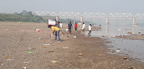 राजुरा (चंद्रपूर): जिल्ह्यातील जीवन वाहिनी म्हणून ओळखली जाणारी वर्धा नदी अलीकडे प्रदूषणाच्या विळख्यात सापडलेली आहे. बारमाही वाहणाऱ्या नदीच्या पात्रातील पाणीही प्रदूषित झालेले आहे. गणेशोत्सव, शारदाउत्सव व इतर धार्मिक कार्यक्रमांमध्ये नदीच्या पात्रात निर्माल्य विसर्जन होत असल्यामुळे नदीच्या पात्रामध्ये घाण पसरलेली आहे. नगर परिषद राजुरा च्या वतीने माझी वसुंधरा जलस्त्रोत स्वच्छता अभियानांतर्गत स्वच्छता अभियान राबविण्यात आले. वर्धा नदीचे पात्र स्वच्छ करण्यात आले.