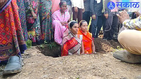 यावेळी काथरगाव पिंप्री येथे शेतकरी व महिलांनी खड्डा खोदून स्वतः खड्ड्यात शरीराचा अर्धा भाग बुजवून घेतला. या आंदोलनात संरपच सुवर्णा टापरे, उपसरपंच लीला संजय मुंडे, सुमेध हातेकर, प्रियाताई गोलर, विलास कंकाळ, संजय मुंडे, सुधाकर डाखोरे, निळकंठ माळोकार, संदिप खराटे, रोशन हातेकर, राहुल तायडे, गणेश टापरे आदीं शेतकऱ्यानी भुमिगत करुन आंदोलन केले. यावेळी गावकरी, महीला, शेतकरी मोठ्या संख्येने उपस्थित होते.