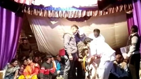 स्व. युवराज शेंडे स्मृती प्रतिष्ठान व सार्वजनिक नाट्य कला निकेतन खुर्दतर्फे जावायांचा सत्कार सोहळा व विवाह नोंदणी प्रमाणपत्रांचे वितरण दरवर्षीप्रमाणे यंदाही बुधवारी करण्यात आले. दीड दशकांपासून सुरू असलेला हा सोहळा यंदा विवाह नोंदणी प्रमाणपत्राचे वितरण देऊन करण्यात आला. दिवाळीच्या निमित्ताने गावात पाचवीच्या मंडईचे आयोजन करण्यात येते. यानिमित्ताने जावई सत्कार सोहळा आटोपून जावयांच्या व पाहुण्यांच्या मनोरंजनासाठी झाडीपट्टी संगीत तीन अंकी नाटकाचे आयोजन करण्यात आले होते. जावयांना सत्कारासाठी मंचावर बोलविण्यात आले होते. ही अनोखी परंपरा पाहून त्यांच्या चेहऱ्यावर स्मितहास्य होते. यावेळी गावातील पोलिस विभागात कार्यरत असलेले तरुण ज्ञानेश्वर भोयर यांनी जावयांना विशेष भेटवस्तूही दिल्या.