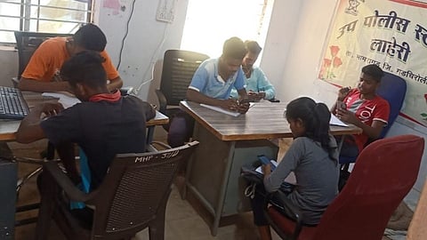 भामरागड (जि. गडचिरोली) : सध्या विद्यापीठाशी संलग्नित महाविद्यालयांतील विद्यार्थ्यांच्या ऑनलाइन परीक्षा सुरू असून अनेक ठिकाणी नेटवर्कची समस्या विद्यार्थ्यांना भेडसावत आहे. मात्र, लाहेरीसारख्या अतिदुर्गम भागांत जिथे नागरिकांना मोबाईल नेटवर्क शोधूनही सापडत नाही तिथे पोलिस मदतीला आले असून थेट पोलिस स्टेशनमध्ये तेथील नेटवर्कचा वापर करून विद्यार्थ्यांना परीक्षा देण्याची सोय पोलिस विभागाने केली आहे. त्यामुळे परीक्षार्थी विद्यार्थ्यांची खूप मोठी समस्या सुटली आहे.