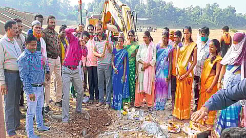 भामरागड (जि. गडचिरोली) : भामरागड शहराच्या वेशीवरून वाहणाऱ्या पर्लकोटा नदीच्या पुरात ठेंगणा पूल बुडत असल्याने दरवर्षी पावसाळ्यात येथील नागरिकांना अनेक दिवस संपर्कहीन व्हावे लागते. या नदीवरील पुलाच्या बांधकामांचे घोंगडे अनेक दिवसांपासून सरकार दरबारी भिजत पडले होते. मात्र सोमवारी (ता. 4) अखेर या पुलाची प्रतीक्षा संपली. पुलाच्या बांधकामाचे भूमिपूजन होऊन बांधकामाला सुरुवात झाली आहे.
