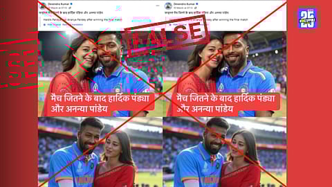 व्हायरल पोस्टमध्ये दावा केला गेला की, अनन्या पांडे आणि हार्दिक पांड्या यांनी भारताच्या न्यूझीलंडविरुद्धच्या विजयावर (आयसीसी चॅम्पियन्स ट्रॉफी फायनल) दुबई क्रिकेट स्टेडियममध्ये गळाभेट घेतली. या पोस्टमध्ये दावा करण्यात आला की हे फोटो 9 मार्च 2025 रोजी काढले गेले आहेत.