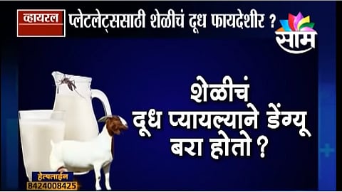 शेळीचं दूध अनेकजण पितात. पण, यामुळं डेंग्यू बरा होतो का...? याबद्दल अधिक माहिती डॉक्टर देऊ शकतात...त्यामुळं आमचे प्रतिनिधी डॉक्टरांना भेटले...त्यांना व्हायरल मेसेज दाखवला आणि खरंच शेळीचं दूध प्यायल्याने डेंग्यू बरा होतो का हे जाणून घेतलं. शेळीचं दूध प्यायल्याने प्लेटलेट्स वाढतात हे सिद्ध झालेलं नाही. शेळीच्या दुधात प्रोटीन, मिनरल्स, सेलिनीयम असे पोषक घटक असतात. प्लेटलेट्स वाढवण्यासाठी आवश्यक असलेले हे घटक इतर पदार्थांमधून मिळतात. प्लेटलेट्स वाढवण्यासाठी भरपूर पाणी पिणे आणि प्रोटीनयुक्त डाएट आवश्यक आहे. प्रोटीनयुक्त डाएटने पाच ते सात दिवसात प्लेटलेट्स नॉर्मल होतात