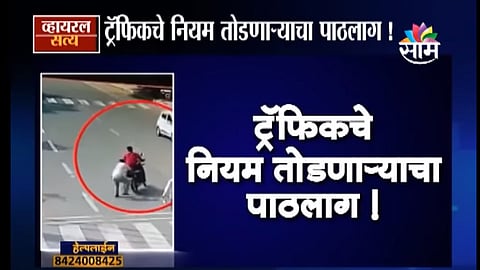 हा सगळा प्रकार सीसीटीव्हीत कैद झालाय. ही घटना गुजरातच्या वडोदरामध्ये घडलीय. 500 रुपयांचा दंड द्यावा लागेल म्हणून बाईकस्वारानं पळ काढला. पण, पोलिसांनी बाईकस्वाराला पकडून त्याच्यावर कारवाई केलीय. तर बाईकस्वाराला पकडणारा ट्रॅफिक पोलिस गंभीर जखमी झालाय.